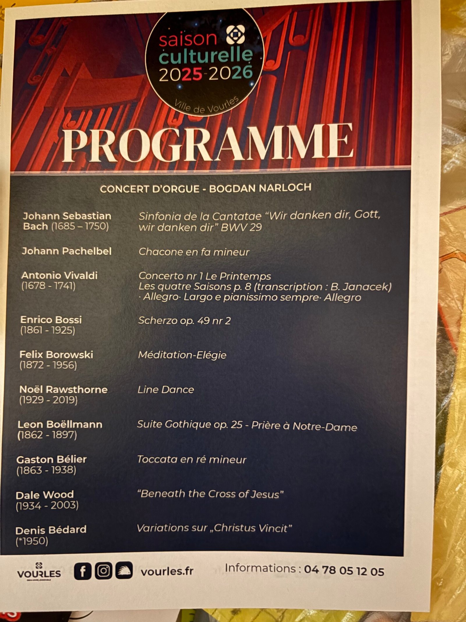 • VENEZ NOMBREUX EN DIMANCHE 15 MARS 2026 AUTOUR DE L’ORGUE DE VOURLES (69)
